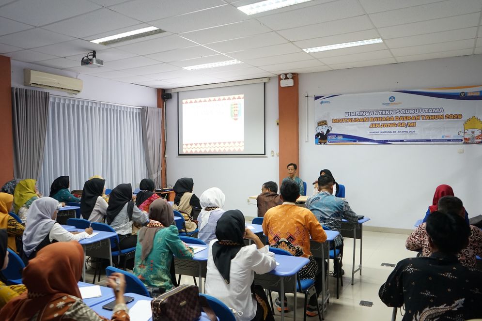 BANDAR LAMPUNG — Balai Bahasa Provinsi Lampung menyelenggarakan kegiatan Bimbingan Teknis (Bimtek) Guru Utama Revitalisasi Bahasa Daerah jenjang SD/MI pada 20 s.d. 22 April 2026, bertempat di Balai Penjaminan Mutu Pendidikan (BPMP) Lampung.