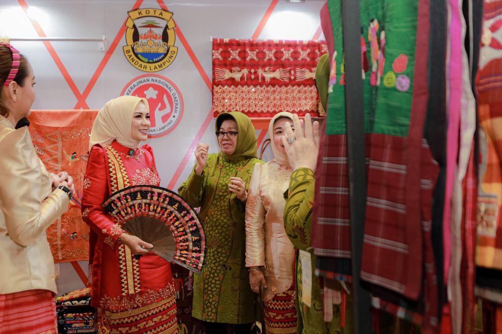 Dalam ajang berskala nasional tersebut, Dekranasda Lampung menghadirkan perwakilan dari delapan kabupaten/kota dengan beragam wastra dan kerajinan khas daerah, mulai dari kain tapis Lampung hingga produk kriya unggulan UMKM.