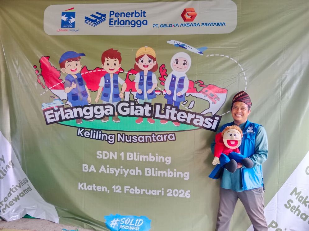 KLATEN – Pendongeng asal Lampung, Jarwo Songha, mengikuti roadshow mendongeng bersama Solidaritas Erlangga ke berbagai pelosok Indonesia pada awal 2026.