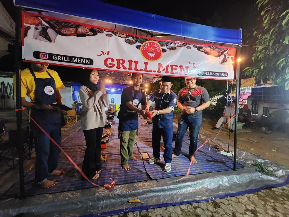 METRO – Mahasiswa Prodi Bisnis Digital Institut Informatika dan Bisnis (IIB) Darmajaya Wahyu Rianto melaunching usaha kulinernya “Grill.men” di Jalan Simpang Kampus 15a Iringmulyo, Metro Timur, Kota Metro, Jumat (9/12/2023).