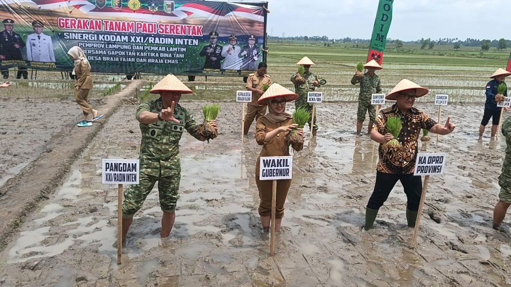 Sementara itu, Panglima Kodam XXI/Radin Inten, Mayor Jenderal TNI Kristomei Sianturi, menegaskan bahwa gerakan tanam padi serentak ini sejalan dengan kebijakan Presiden Prabowo Subianto yang menempatkan ketahanan pangan sebagai fondasi kedaulatan bangsa.
