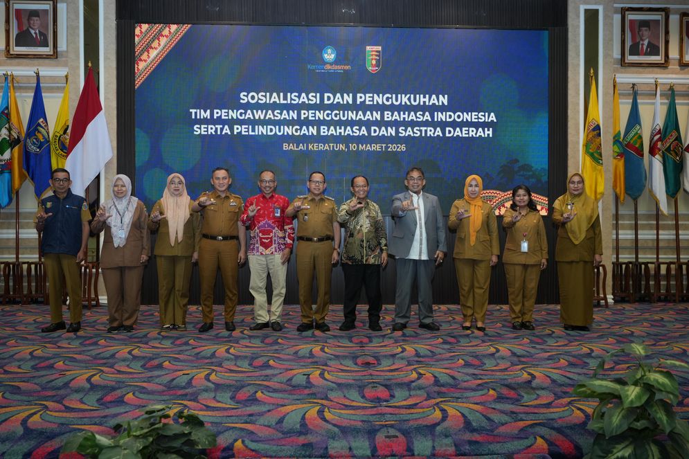 BANDAR LAMPUNG – Balai Bahasa Provinsi Lampung menggelar sosialisasi sekaligus pengukuhan Tim Pelaksana Pengawasan Penggunaan Bahasa Indonesia serta Pelindungan Bahasa dan Sastra Daerah di Balai Keratun, Pemerintah Provinsi Lampung, Selasa (10/3/2026).