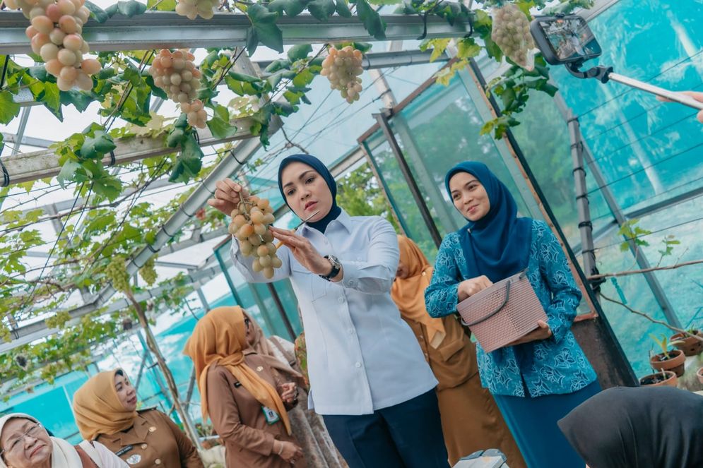 LAMPUNG SELATAN – Ketua Tim Penggerak (TP) PKK Provinsi Lampung, Purnama Wulan Sari, melakukan panen buah anggur dan melon sebagai bentuk nyata optimalisasi lahan produktif di PKK Agro Park, Desa Sabah Balau, Senin (26/1/2026).