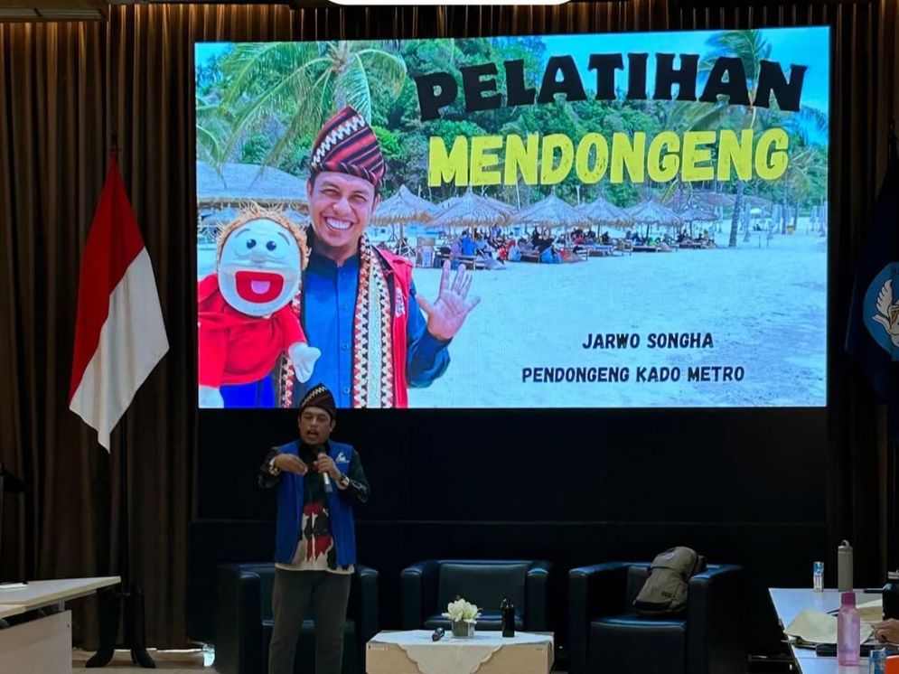 Jarwo Songha, sapaan akrabnya, juga memberikan tips agar peserta tampil percaya diri saat mendongeng. “Kuasai materi dongeng dan pahami suara-suara karakter yang berbeda,” terang pendongeng nasional itu.