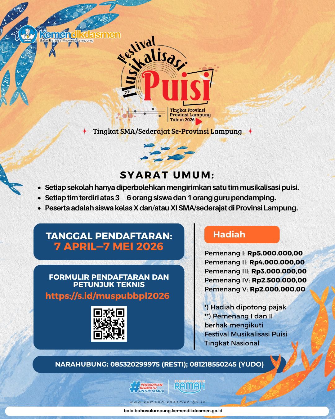 Informasi lengkap mengenai petunjuk teknis, teks puisi, serta formulir pendaftaran dan pengumpulan karya dapat diakses melalui laman resmi BBPL. Melalui kegiatan ini, BBPL berharap semakin banyak pelajar yang mencintai dan mengembangkan sastra melalui pendekatan kreatif. (*)