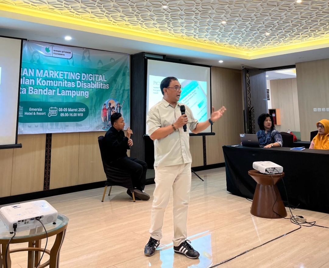 Yayasan Satunama menggelar Pelatihan Marketing Digital untuk Perkumpulan Disabilitas Kota Bandar Lampung bertempat di Hotel Emersia. (sumber: Ist)BANDARLAMPUNG - Sebagai upaya meningkatkan peluang usaha yang dimiliki anggota Perkumpulan Disabilitas Bandar Lampung, Yayasan Satunama menggelar Pelatihan Marketing Digital bertempat di Hotel Emersia selama dua hari pada Minggu (8/3)- Senin (9/3).