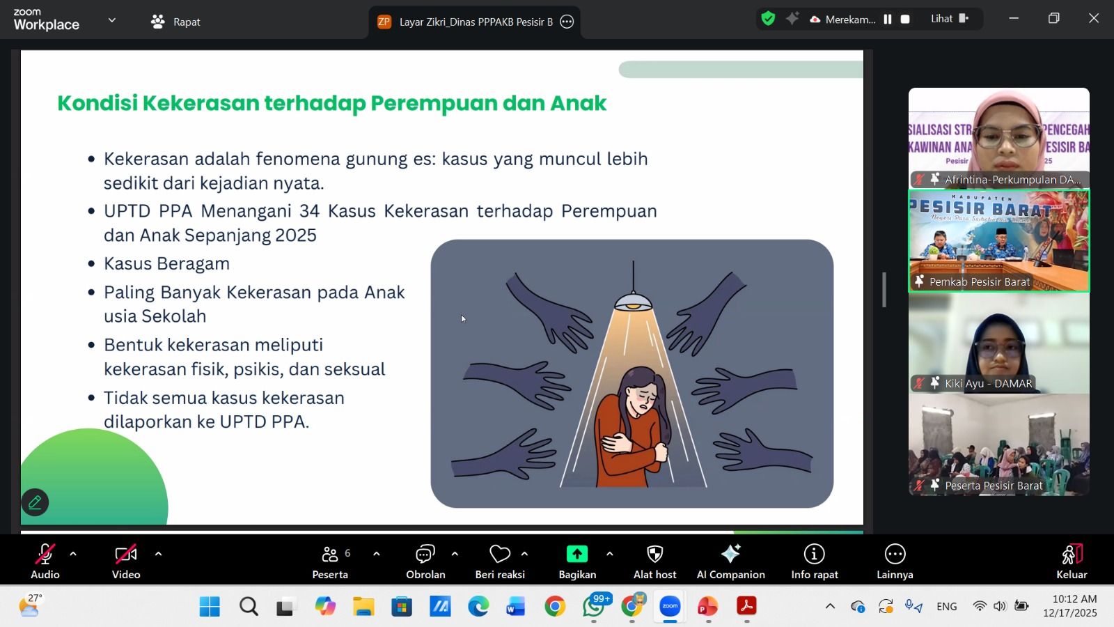 Wakil Bupati Pesisir Barat, Irawan Topani mengapresiasi kepada Perkumpulan DAMAR dan seluruh mitra atas komitmen dan kerja nyata dalam isu perlindungan hak perempuan dan anak.