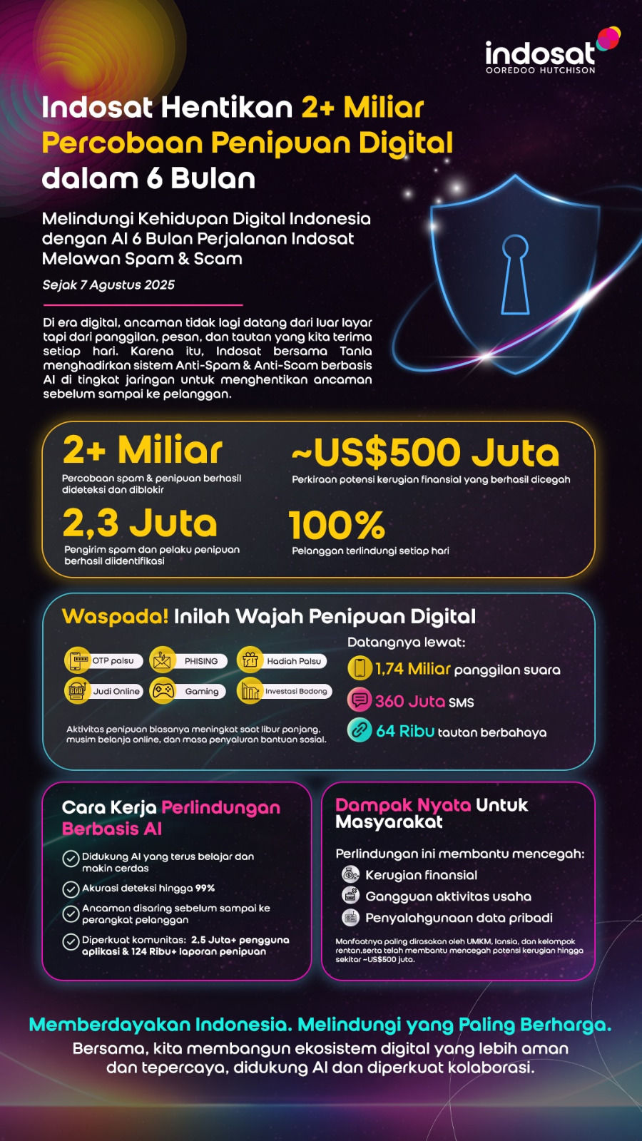 Hal tersebut mendorong Indosat bersama Tanla terus menyempurnakan sistem perlindungan agar tetap relevan dan mudah digunakan.