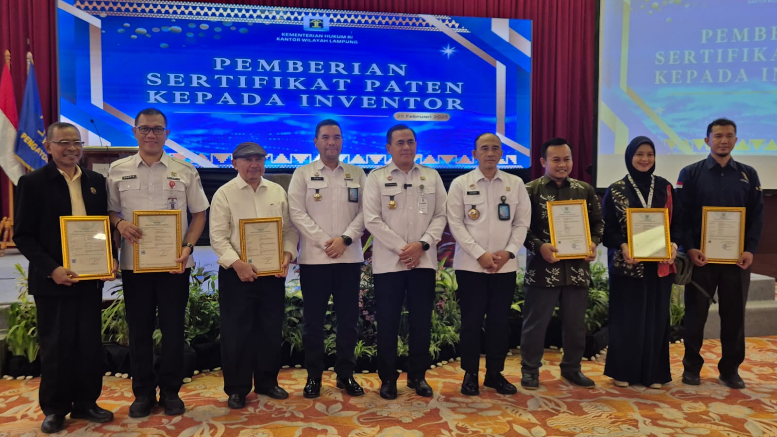 Penyerahan sertifikat ini tidak hanya menjadi simbol legalitas atas hak eksklusif yang diberikan negara, tetapi juga merupakan wujud penghargaan terhadap dedikasi, kreativitas, dan kontribusi para inventor dalam pengembangan ilmu pengetahuan dan teknologi.